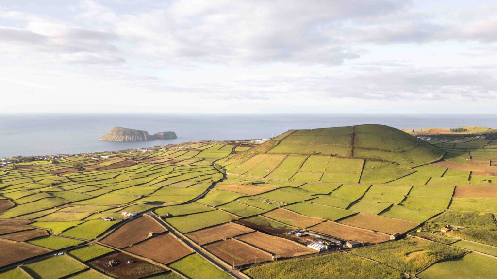 I started my journey on Terceira, one of the larger islands in the Azores. It’s a place where you’ll want to spend a few days, especially if you want to explore the entire island. The largest town on Terceira is Angra, making it the perfect base for discovering the island. Here, you’ll find stunning caves, refreshing natural pools, and breathtaking viewpoints. From the air, Terceira is one of the most beautiful islands, with fields bordered by characteristic stone walls that create a patchwork of green across the island.