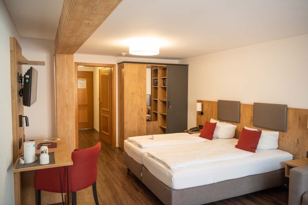 During my stay in Waldkirch, I stayed at Hotel & Gasthaus Löwen, a 10-minute drive from the centre of Waldkirch. The rooms are classically German and offer a cosy terrace with views of the surrounding hills. In the morning, we were treated to a rich breakfast buffet, including a selection of local cheeses from the region. There is free car parking.