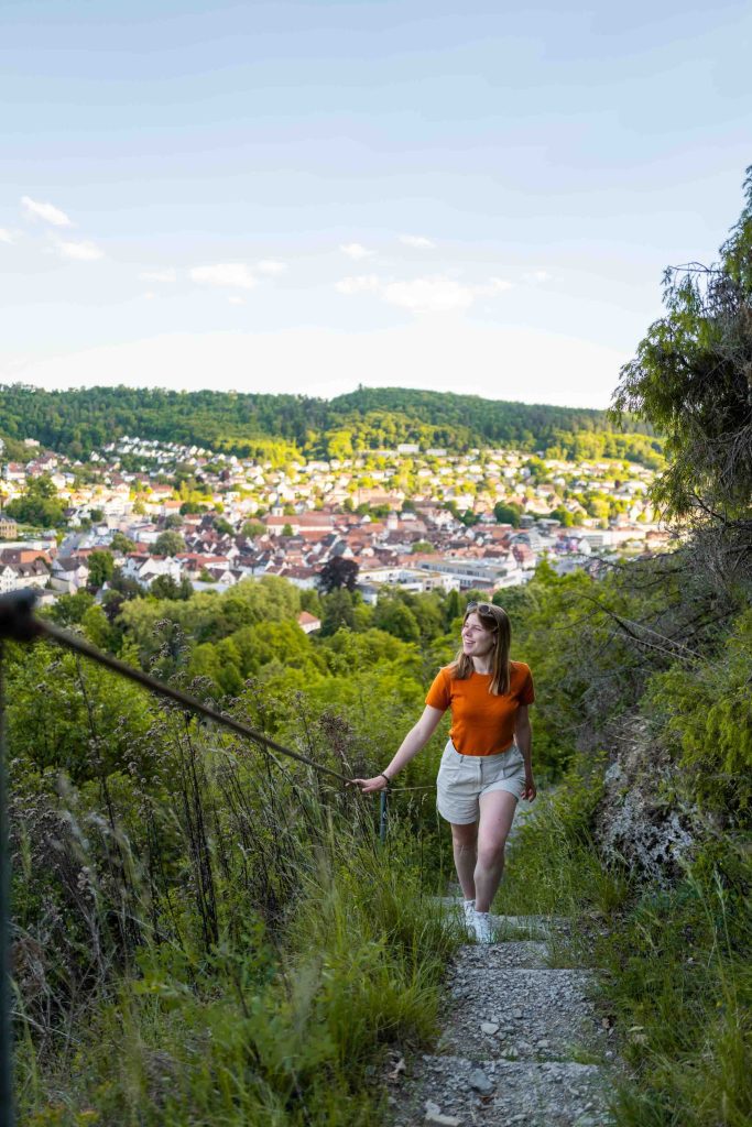 The walk starts in the Stadtgarten. From there, you dive into the forest, where the paths take you past places like the Gimpelstein and the historic Calwer Schafott. Along the way, you’ll also pass the Steinerne Bank, a perfect place to take a break and enjoy the surroundings. Afterwards, be sure to finish at Caféhäusle for a well-deserved break!