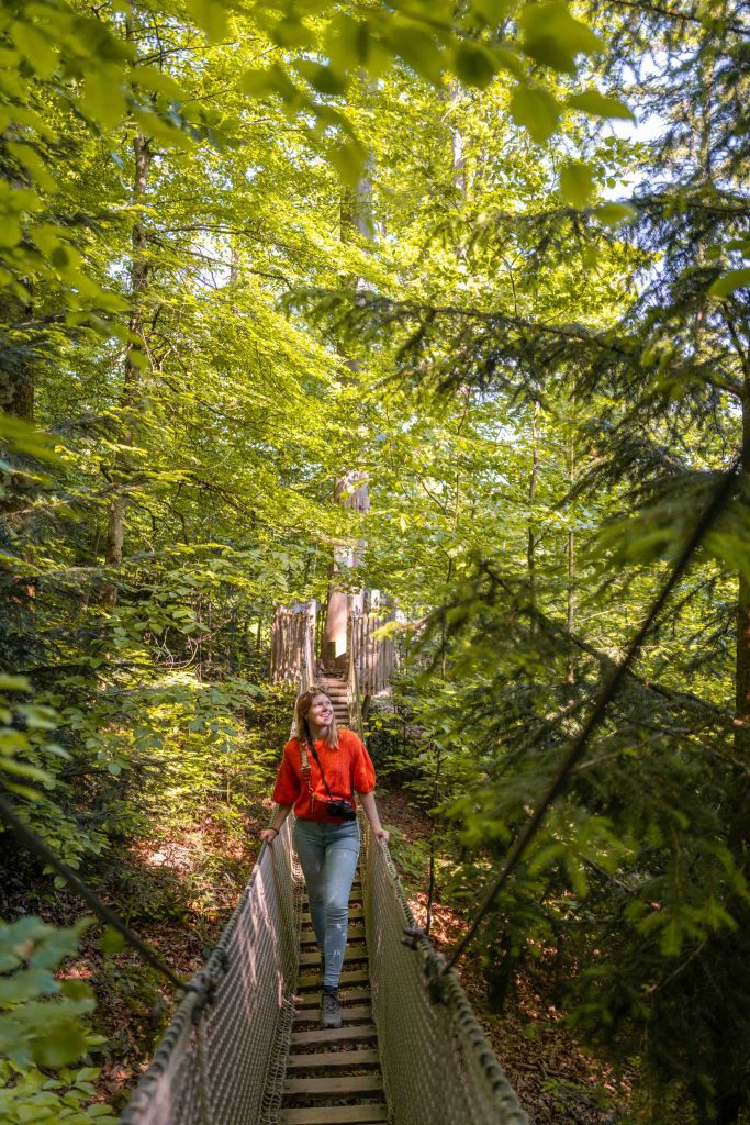 The Baumkronenweg in Waldkirch is an absolute must for those who love spectacular views and a brisk walk through nature. Because yes, you have to be prepared for it. After all, you first hike 800 metres all the way to the top of a hill. At 23 metres, you then follow a path between the treetops of the Black Forest, with beautiful views of the valley and the village of Waldkirch along the way.