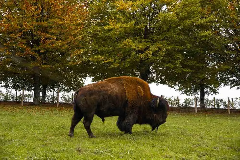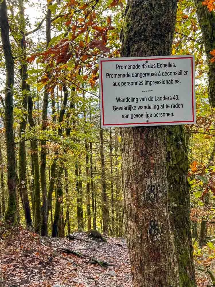 From the church, you walk towards the forest where at one point you will come across a warning sign with the text “Walk of the Ladders 43. Dangerous walk not recommended for sensitive people.” Undoubtedly this is a very creative translation of French that immediately puts a smile on your face.