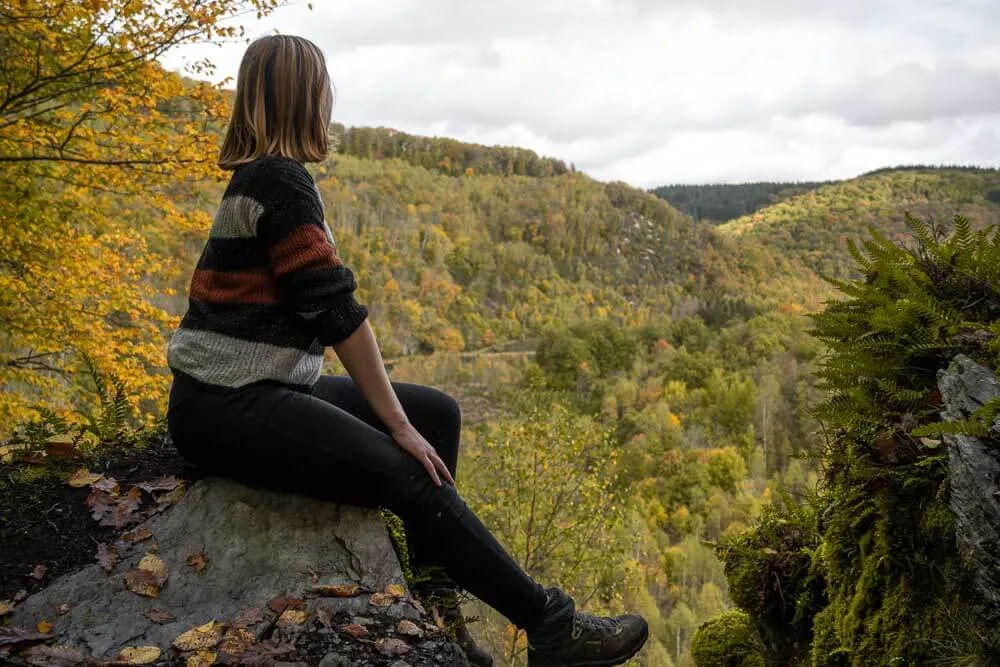 As you clamber down, you are treated to a beautiful view every now and then. The forests around the Semois River are a beautiful picture, especially in autumn. Once down, you can paddle in the river. The ideal spot for a stopover, but be aware that you are not even halfway through the walk.