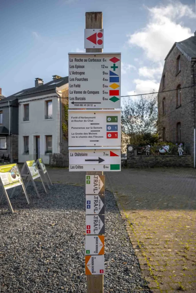 The village of Herbeumont is not large. Finding the starting point of the hike is therefore not a difficult task. It starts at the tourist office, also called Syndicat Initiative asbl on Google Maps. It is located right next to the town hall, where you have parking to leave your car for free.
