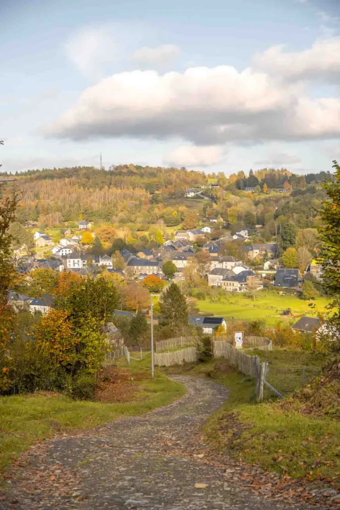 Eventually, you follow the river until you get back on a paved road. The route will take you the last part on the asphalt until you return to the foot of the castle and the village of Herbeumont. Anything but spectacular, so would you rather hike through the woods? Then head left into the woods up to the castle – the same route you did at the beginning of the hike to get down.