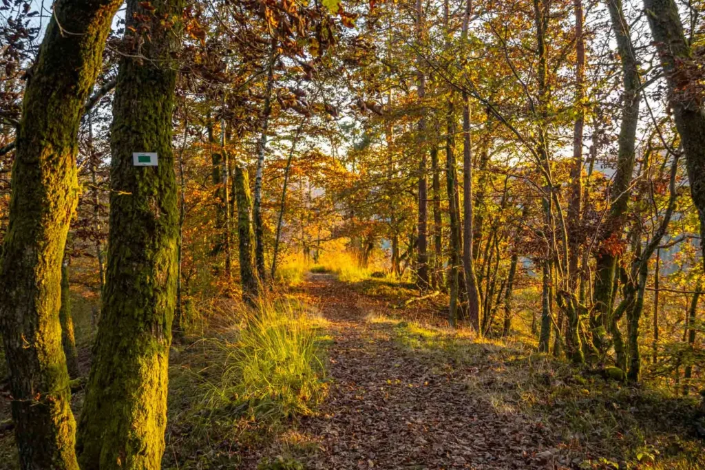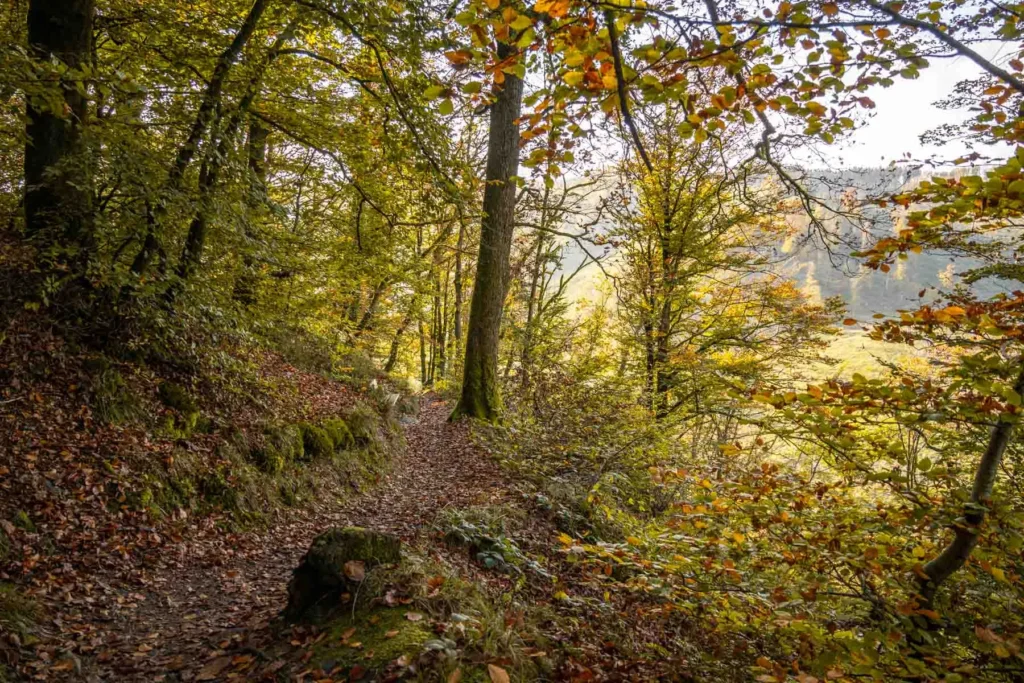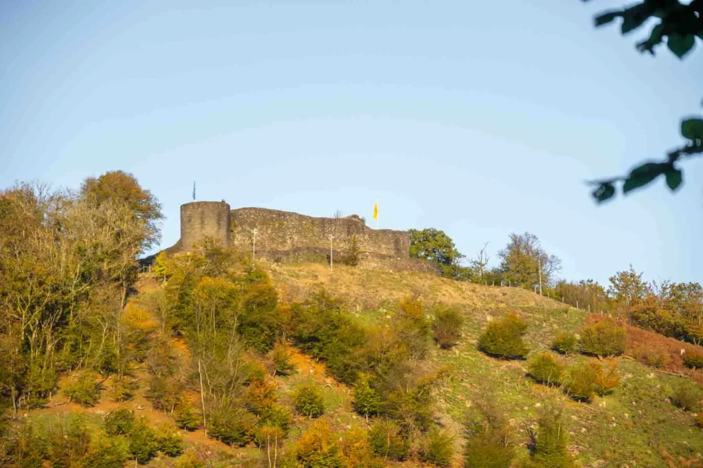 You start the hike right away with a visit to the castle – where you can also park your car. Or to put it another way, just before you enter the castle ruins, the route sends you to the right into the forest. Would you like to visit the ruins? Then you can do this either before or after the walk. Keep in mind that you have to go uphill for the ruins. So perhaps you want to have fresh legs for that. Fortunately, the view is more than worth the climb!