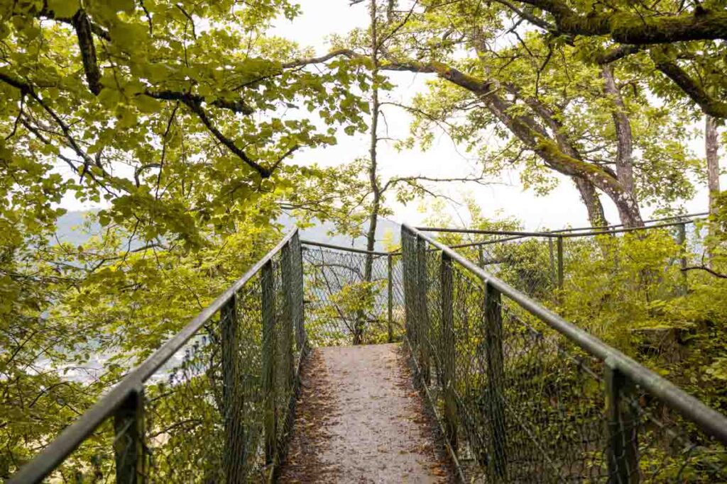 Climb this prominent rock – but make sure to cross the street carefully first – to enjoy the view. The way up is quite unique: you climb a staircase through a narrow cliff in the rock. Spooky? Not really, but if you’re feeling a bit claustrophobic, you can also take a regular path to the right of the rock. It’s a great spot for a short break. Afterwards, climb back down and continue the route on the other side of the road.