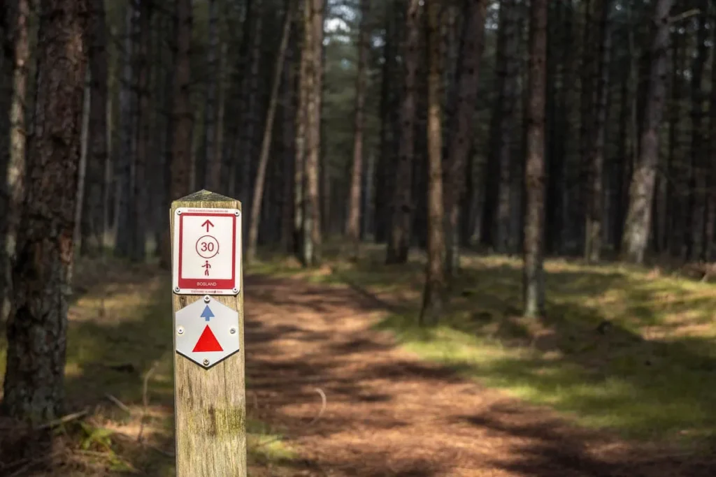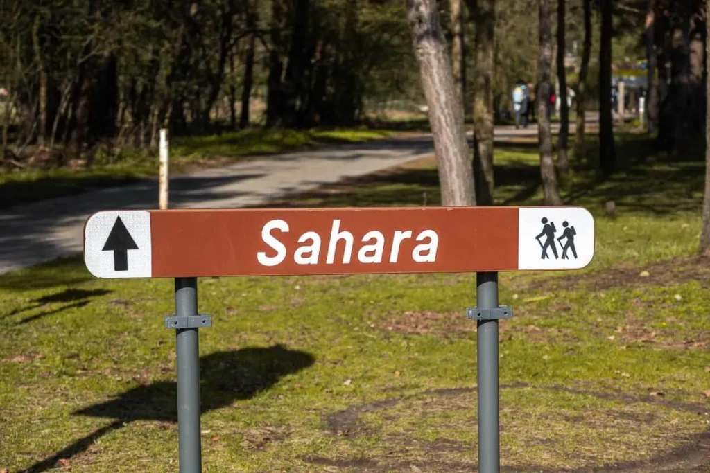 The hiking area of the Lommel Sahara starts right opposite De Soeverein. You follow a dirt road path marked with a brown sign ‘Sahara’ to start the walk. From here you can also see the red triangles that form the guideline for the hike. Do you want to do one of the other hikes? Then you follow the path until you reach the forest. All other hiking trails start here.
