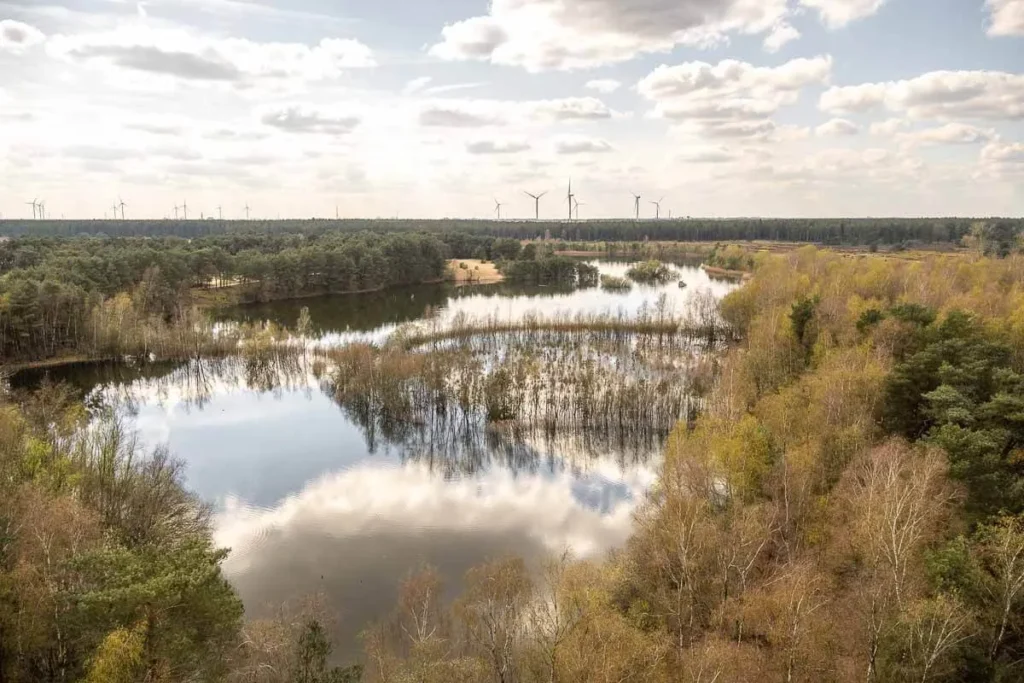 You then hike further into the forest along the beach. Here you will also come across a lookout hut that offers you a beautiful view of the lake and its fauna and flora. Be sure to stop here to enjoy it. Not much further, you will eventually arrive at the lookout tower, The Giant of Bosland. This 30-metre-high tower gives you a breathtaking view of the surrounding Lommel Sahara. But if you are afraid of heights, it is best to think twice before climbing the 144 steps of the tower. At the top, you can sit for a while to enjoy. So don’t rush!