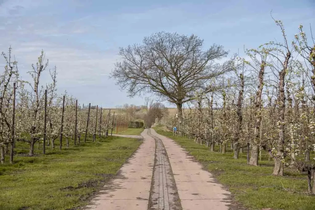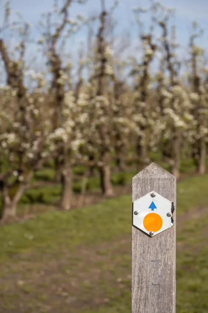 The village of Mettekoven has 4 different hiking trails from 1.5 to 7 km long. Nothing? By linking several routes together, you can spend a wonderful day hiking. I myself did the 4 km long orange route that literally guides you through the fruit fields. Beautiful to see in the spring, but also when the fruit starts to grow in the summer. Halfway you can extend the route for another one and a half kilometres and also pass the Floating Chapel. So plenty to see!