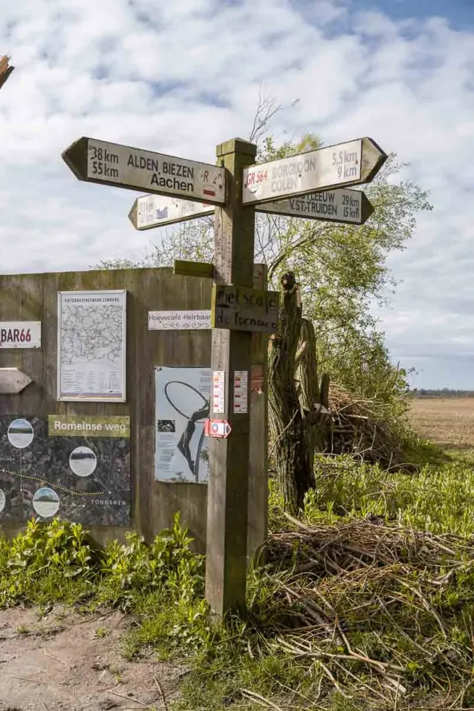 Mettekoven is not big at all, so finding the starting point of the hike is certainly not difficult. Right opposite B&B Hoeve De Brieser you will find a large sign with all the hiking routes on it. Here you can view the different routes and choose the one you like best. I recommend the orange route, of course. A little further in the village you can also just park your car for free on the side of the road and then walk!