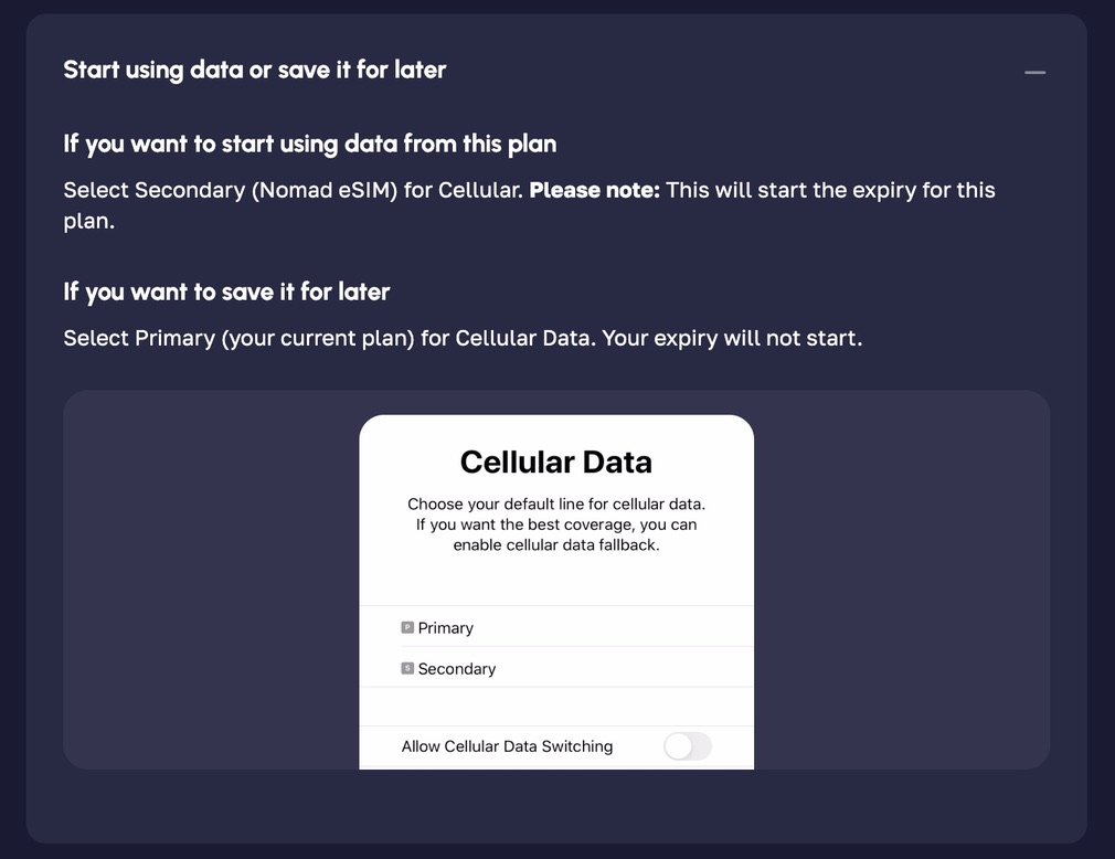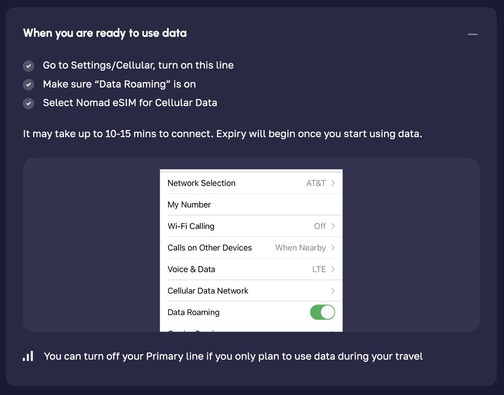 - Activate your eSIM in the Nomad app. Some networks will activate automatically but others require a manual activation. So if your eSIM is not working, check in the instructions or in the app whether manual activation is needed.