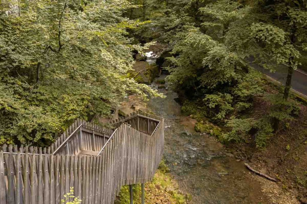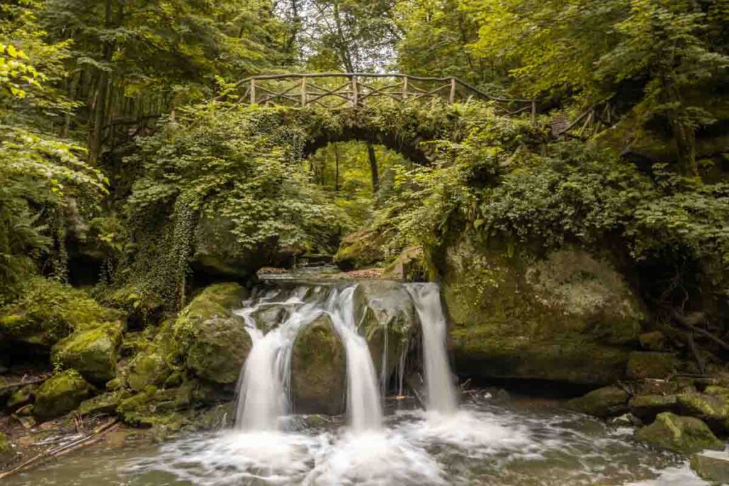 This trail is best known for the Schiessentümpel waterfall. The waterfall consists of three streams, with a quaint stone bridge at the top that looks like it’s come straight out of a fairytale. It’s a stunning sight and a major draw for tourists.
