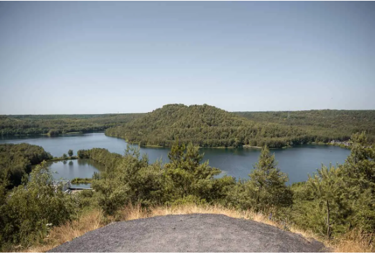 What follows is a trip down through the woods before you arrive at the gate of the Centre Parcs Resort. Terhills’ self-driving shuttles regularly pass through here. The temptation is sometimes too great to take a ride yourself. The tour continues in the direction of the Twin slag heaps on the brand new bridge over the lake. Here, another, more tiring climb awaits. Fortunately, you are also rewarded with a view over the other slag heaps, although they are less wide.