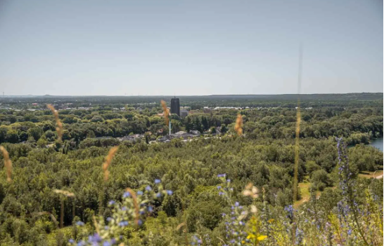 Fortunately, you will be immediately rewarded with a beautiful view. First is Maasmechelen itself, where you can distinguish between the two mine shafts, the church tower of Eisden-Tuinwijk and the single minaret of the Tevhid mosque, later about the Grote Plas with the Twin Slag Heap in the background. A picture to frame! Moreover, you can also take a look inside the Centre Parcs Resort and the luxurious Elaisa Wellness. However, these buildings do take away from the green charm of the view.