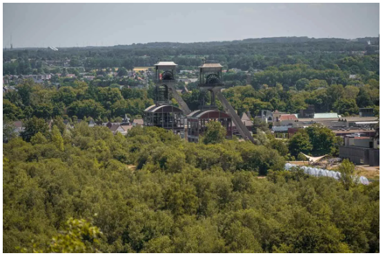 With your face toward Maasmechelen Village, turn left around Hotel Terhills and head toward the towering mine shafts that loom in the distance. That’s where the hike truly begins!